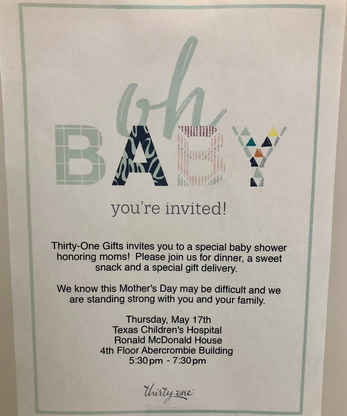 The flyer above was taken on Asher’s birthday (Mother’s Day). It was held at The Ronald McDonald House.
